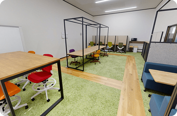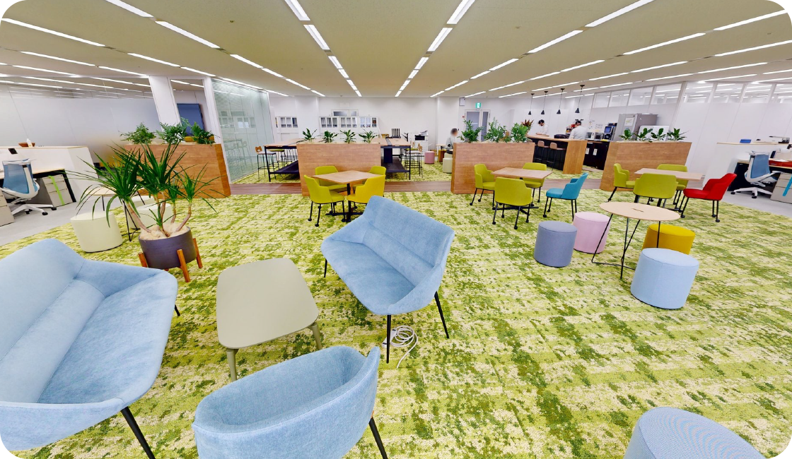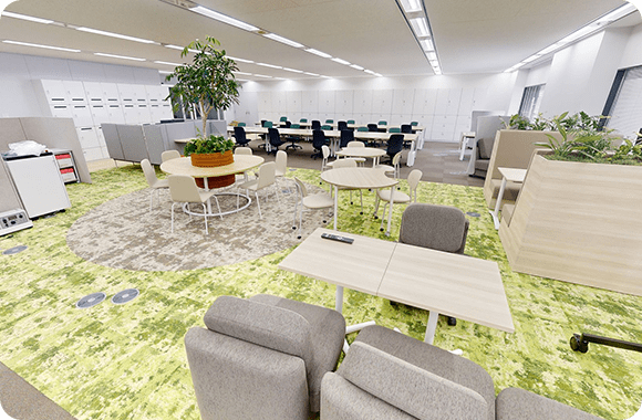 - タイルカーペットの納入はもちろんのこと、オフィス内装全般を請け負っており、「採用」や「社員満足度の向上」「離職防止」といった経営課題を解決するためのオフィス内装のご提案を得意としております。ぜひ安心してお任せください。